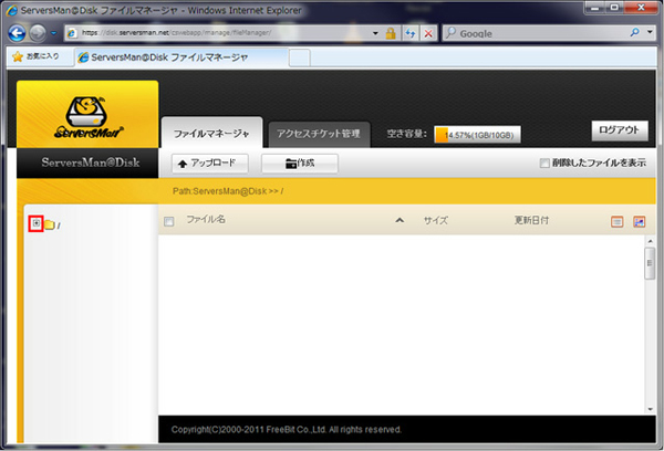 ServersMan@Disk220円(税込)から始められるクラウドストレージサービスServersManサイトよりログインを行います。